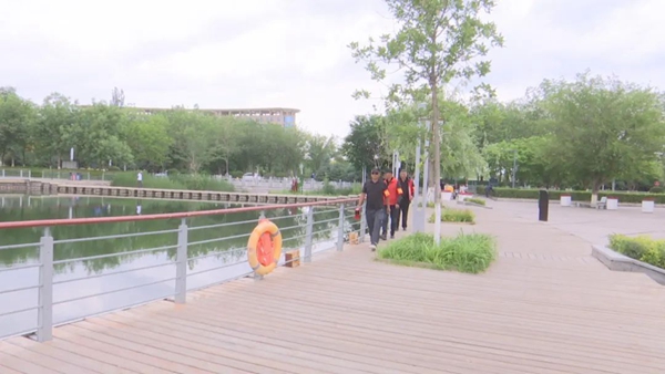 市民高凤英说,最近天气热了,我们经常带孩子们到滨湖河中央公园玩,我们看到公园里多了许多救生圈和救生衣,还有景区的工作人员在巡逻,让我们玩得安心、放心。
