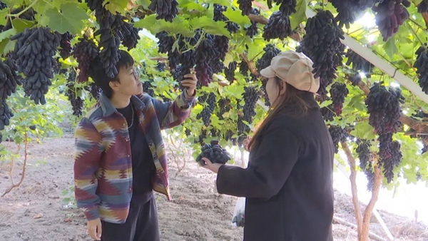 湖北游客朱海鹏:“我觉得很新奇,让人赏心悦目。没想到在10月底还能够吃到这么好的葡萄。”